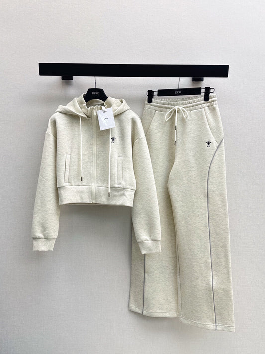 D Cropped Hooded Jacket & Elastic Waist Casual Pants Set