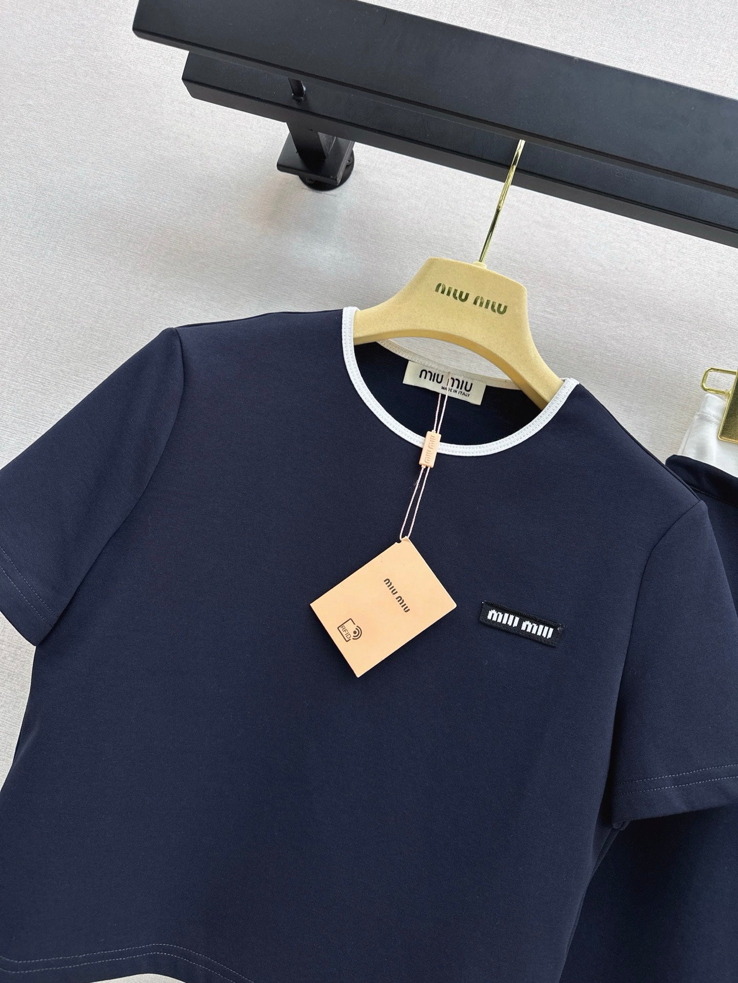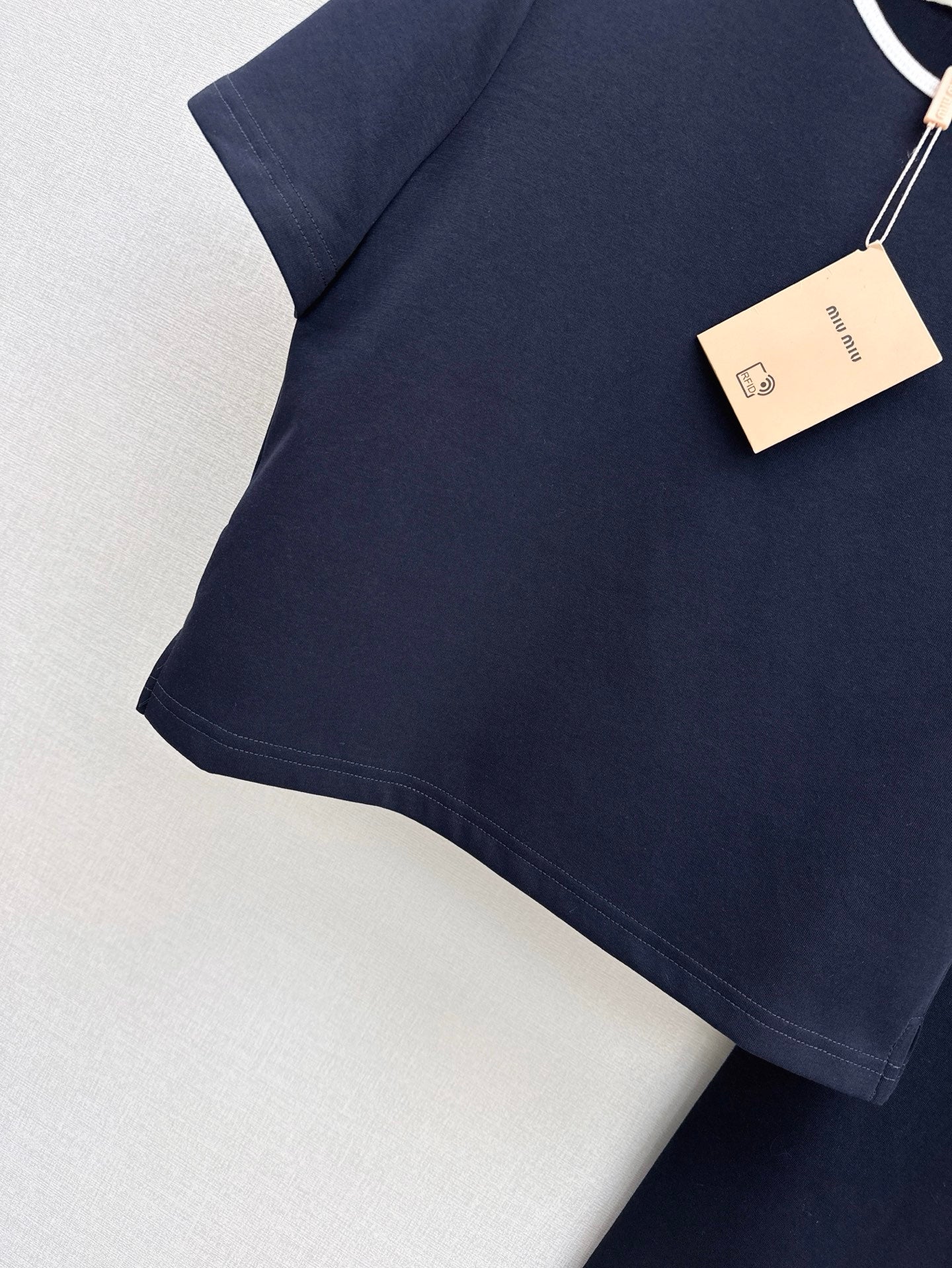 • Top: Cropped T-shirt featuring a contrast color design (color-block).